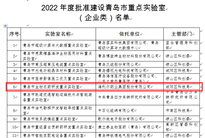 ? ? ? ?近日,青島市科學(xué)技術(shù)局下發(fā)《關(guān)于批準(zhǔn)建設(shè)青島市海洋生物多樣性與保護(hù)等重點(diǎn)實(shí)驗(yàn)室的通知》,公布批準(zhǔn)建設(shè)青島市海洋生物多樣性與保護(hù)等市重點(diǎn)實(shí)驗(yàn)室名單,由集團(tuán)承擔(dān)的“青島市生物農(nóng)藥研發(fā)重點(diǎn)實(shí)驗(yàn)室”榮登榜單。