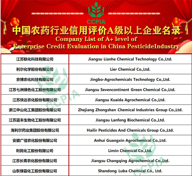 ? ?????10月11日,中國(guó)農(nóng)藥工業(yè)協(xié)會(huì)在上海召開(kāi)第二十屆全國(guó)農(nóng)藥交流會(huì),會(huì)議期間中國(guó)農(nóng)藥工業(yè)協(xié)會(huì)向全社會(huì)隆重發(fā)布了2020年中國(guó)農(nóng)藥行業(yè)企業(yè)信用評(píng)價(jià)等級(jí)的名單,海利爾藥業(yè)集團(tuán)股份有限公司入選中國(guó)農(nóng)藥行業(yè)信用評(píng)價(jià)A級(jí)以上企業(yè)名錄。