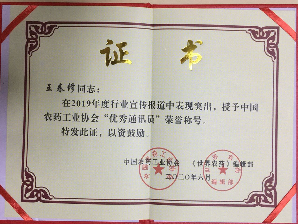 (研發(fā)中心制劑所王春修榮獲“優(yōu)秀通訊員”稱(chēng)號(hào))
