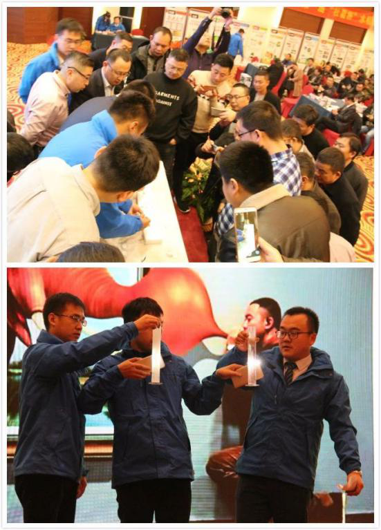 作為本次活動(dòng)的重點(diǎn)推薦產(chǎn)品——“社喜”,奧迪斯作物技術(shù)部技術(shù)經(jīng)理趙城鋼做了重點(diǎn)介紹,“社喜”(75%肟菌酯+戊唑醇水分散粒劑)是配方優(yōu)異,內(nèi)吸性強(qiáng),兼具保護(hù)和治療作用,持效期可達(dá)20天,能加快作物干物質(zhì)積累,增加作物產(chǎn)量,提升作物抗逆能力?!吧缦病奔庸ぜ夹g(shù)高,入水7秒鐘就可全部分解,懸浮率高達(dá)98%以上,穩(wěn)定性強(qiáng),藥液能在2小時(shí)內(nèi)進(jìn)入植物體內(nèi),耐雨水沖刷。隨后,工作人員向大家展示了“社喜”區(qū)別與其他同類產(chǎn)品的優(yōu)異性能,現(xiàn)場直觀的感受引得大家一片驚呼。