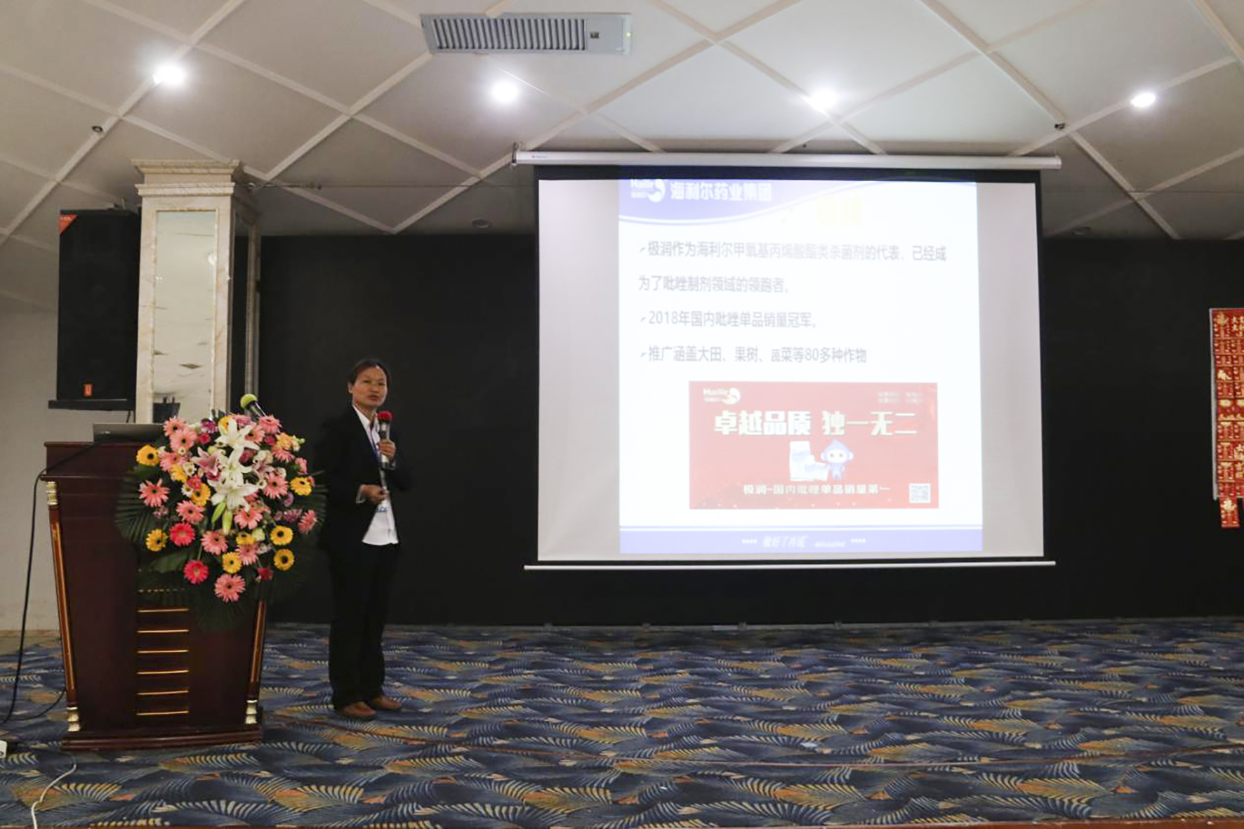 在殺蟲殺菌劑專題中,海利爾技術(shù)專家玄秀蘭以實際極潤、極殲、龍破斬、金盾等產(chǎn)品在作物上的實際應(yīng)用案例,為合作伙伴提供了專業(yè)作物解決方案,并發(fā)布2019年新品,如黑光燈、細(xì)霸、多米提亮、喜多美、封潛、庫豐等產(chǎn)品。