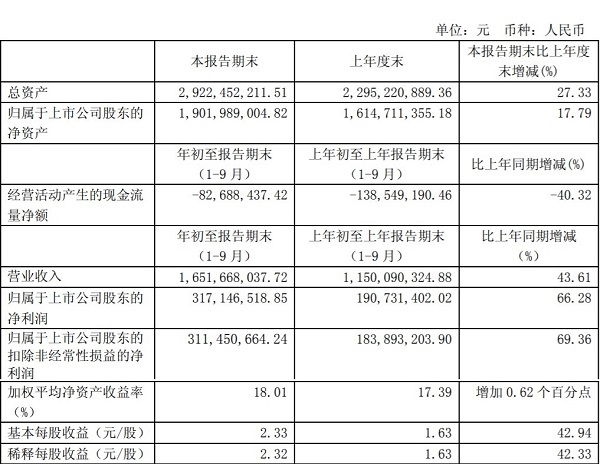 海利爾藥業(yè)集團(tuán)股份有限公司(以下簡(jiǎn)稱“海利爾”)近日發(fā)布了2018年第三季度報(bào)告,報(bào)告顯示,公司前三季度營(yíng)業(yè)收入1,651,668,037.72元,同比增長(zhǎng)43.61%,前三季度歸屬于上市公司股東的凈利潤(rùn)317,146,518.85元,同比增長(zhǎng)66.28%。