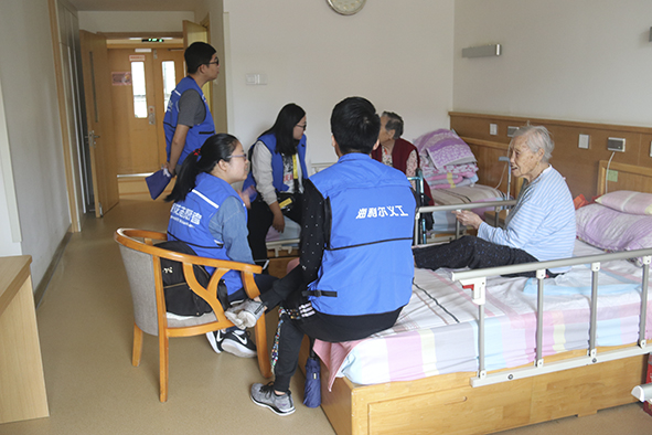 ?????在福利中心,志愿者們和老人們親切交流,關(guān)切地詢問老人們的生活起居以及身體狀況。有的志愿者將月餅切成小塊,仔細(xì)地送到老人口中,讓老人提前感受中秋團(tuán)圓的氣氛。有的志愿者和老人們一起拍手唱歌,將快樂用歌聲傳遞,語笑嫣然中流動的是濃濃深情。