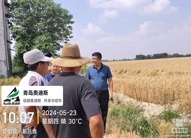 ? ? ? ?5月23日,名譽(yù)董事長(zhǎng)早早來(lái)到河南省正陽(yáng)縣的田間地頭。名譽(yù)董事長(zhǎng)從早上7:30開始拜訪經(jīng)銷商、零售商、農(nóng)戶,并到農(nóng)戶田間地頭實(shí)際走訪查看產(chǎn)品效果,給用戶及經(jīng)銷商講解效果。在名譽(yù)董事長(zhǎng)帶領(lǐng)下,包括客戶、業(yè)務(wù)經(jīng)理在內(nèi)的20多人前往示范地塊,針對(duì)小麥進(jìn)行“栗健”產(chǎn)品的推介。炎炎烈日下,名譽(yù)董事長(zhǎng)走向田間、躬身一線感動(dòng)了所有在場(chǎng)人員,名譽(yù)董事長(zhǎng)倡導(dǎo)的“做放心產(chǎn)品,讓農(nóng)戶放心”的理論,更是展示了田間初心、提振了客戶信心、堅(jiān)定了營(yíng)銷將士的決心,贏得了在場(chǎng)人員的由衷敬佩,客戶紛紛與名譽(yù)董事長(zhǎng)合影留念。直到下午3時(shí)30分,名譽(yù)董事長(zhǎng)匆匆進(jìn)食午餐后,又馬不停蹄前往下一站。