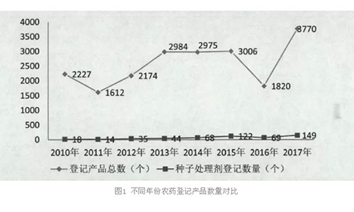 ??? 一是產(chǎn)品數(shù)量少。雖然2010年以來種子處理劑登記數(shù)量持續(xù)增加,但在農(nóng)藥產(chǎn)品總數(shù)中僅占比約2%,未來還有廣闊的發(fā)展空間。