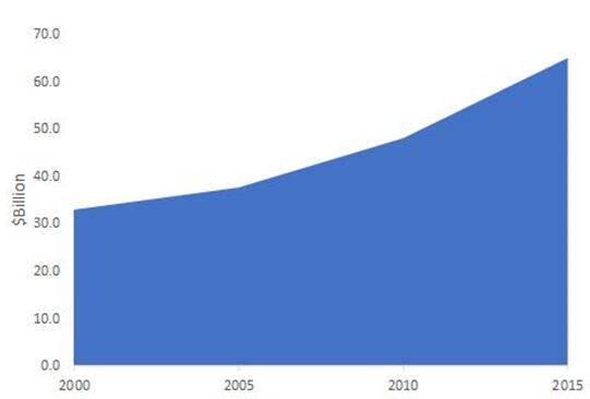 圖2. 農(nóng)化產(chǎn)品的銷售額逐年增長(單位:十億美元 來源:BIS研究所分析)