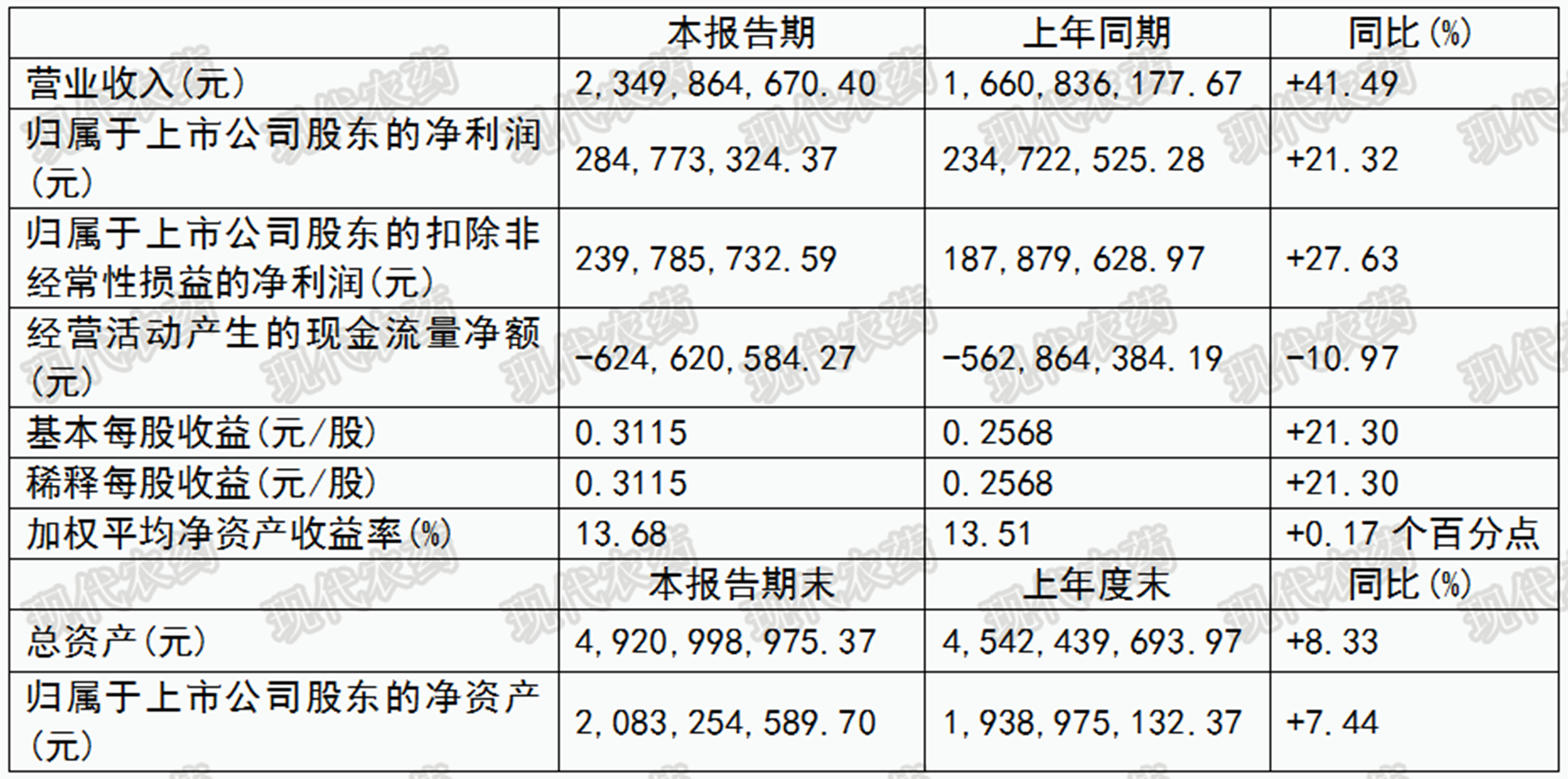 ? ??報(bào)告期內(nèi),公司整體經(jīng)營業(yè)績增長,實(shí)現(xiàn)營業(yè)總收入23.49億元,較上年同期增長41.49%;實(shí)現(xiàn)歸屬于上市公司股東的凈利潤2.84億元,較上年同期增長21.32%。