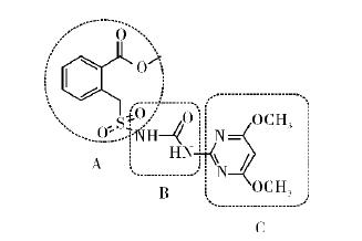 磺酰脲類除草劑是除草劑中品種最多的一類除草劑,上市品種多達40多個。其中銷售額上億美元的品種就有9個,所有此類除草劑的結(jié)構(gòu),都是對圖1中A或C基團的改變,它們的連接鍵基本上一成不變。