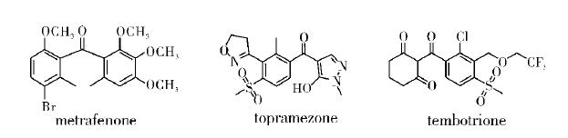 10余年前曾有人提出,在二甲芳基間以羰基為“橋”進行連接通常無農(nóng)藥活性,但以后出現(xiàn)了一些以羰基為連接鍵的新農(nóng)藥,其中可能有新理論,對新農(nóng)藥的創(chuàng)制大有裨益。圖3為以羰基為連接鍵的新農(nóng)藥品種。
