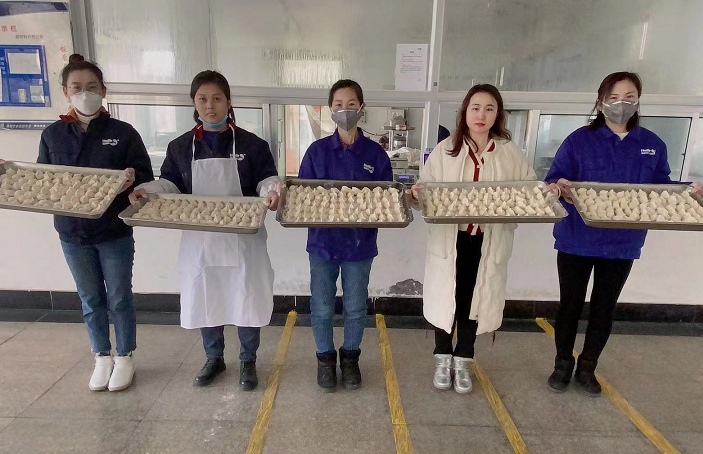 ? ?一大早,前來參加活動的代表們就忙開了,有的切菜、有的打餡,個個忙的不亦樂呼。大家在團團圓圓、和和美美的氣氛中熟練地捏著面粉團,一只只圓潤潔白的餃子和湯圓呈現(xiàn)在大家面前,讓人看了垂涎欲滴。餃子代表和諧,湯圓代表的是團圓,在包餃子、包湯圓的過程中,大家感受著節(jié)日的快樂,也把新一年的祝福就像水餃、元宵一樣塞的滿滿的、捏的圓圓的,送給海利爾的每一位家人。