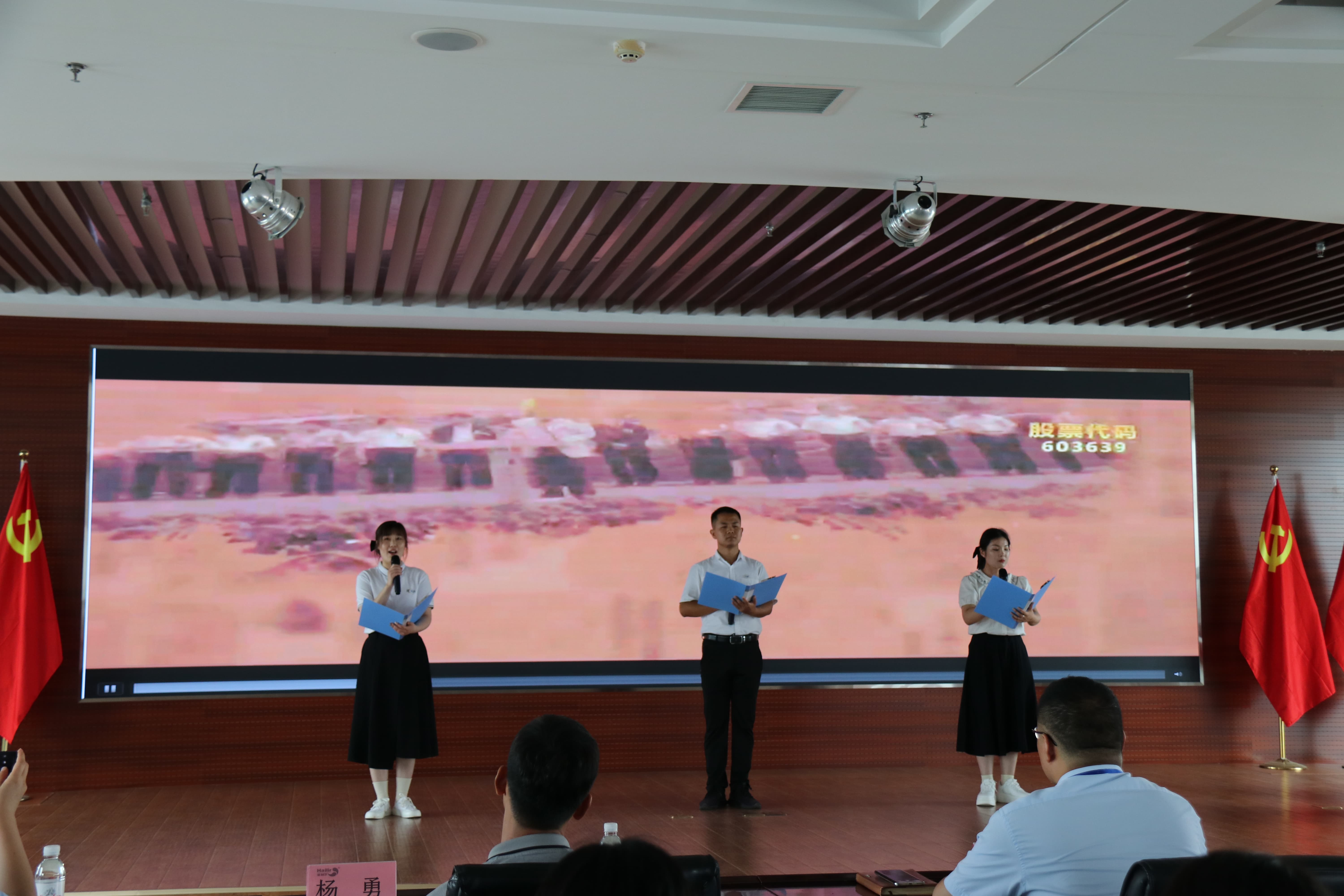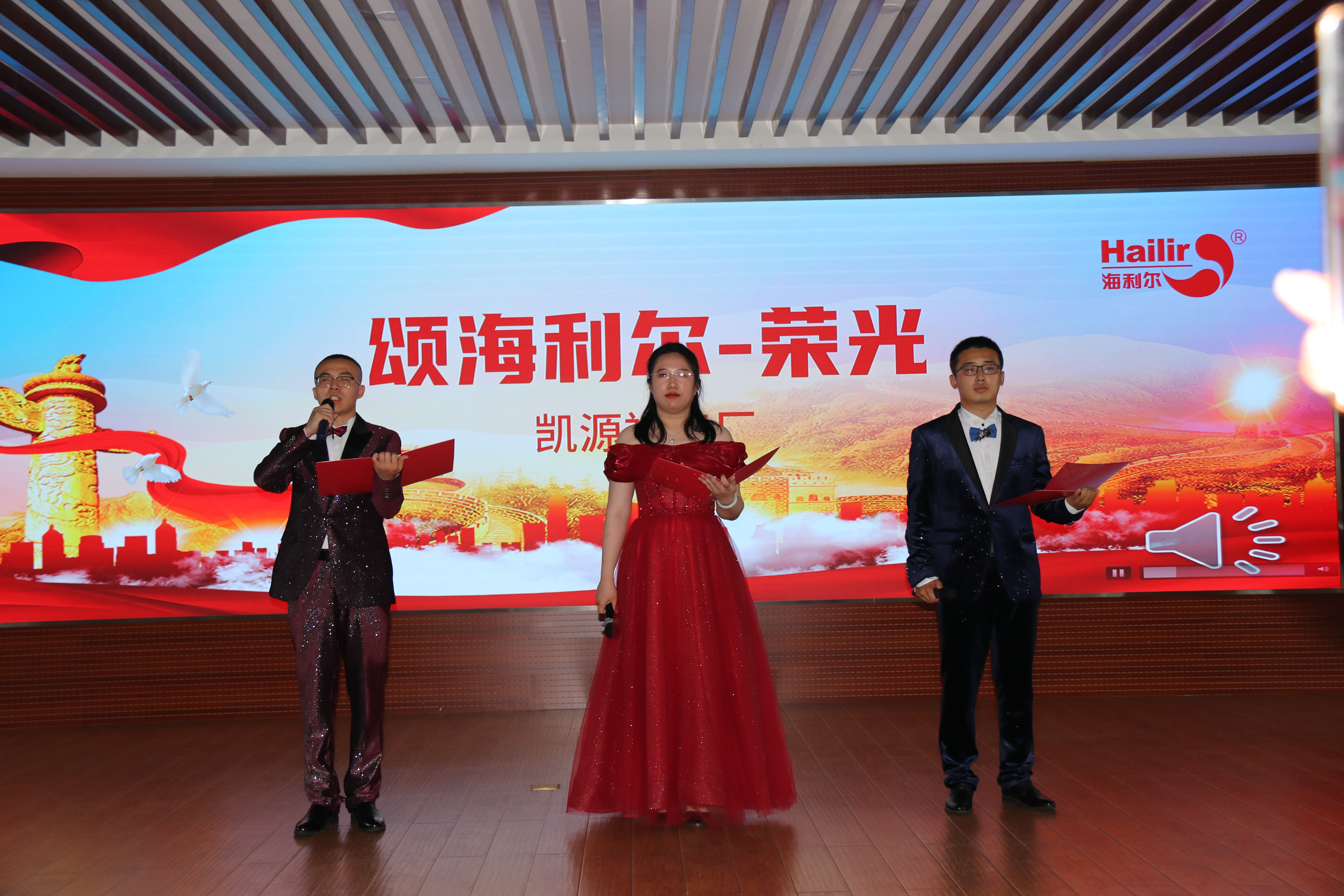 ? ? ? ?集團(tuán)董事長葛堯倫、集團(tuán)總裁葛家成、集團(tuán)總工程師兼研發(fā)中心主任王良清、集團(tuán)制劑生產(chǎn)總監(jiān)楊勇、集團(tuán)人力資源總監(jiān)姜延紅、集團(tuán)行政管理總監(jiān)譚長雁等領(lǐng)導(dǎo)出席活動(dòng)并擔(dān)任評(píng)委。8個(gè)參賽單位(按出場順序)——山東海利爾工廠、國際業(yè)務(wù)中心、奧迪斯工廠、恒寧生物、青島海利爾工廠、滕潤翔、凱源祥工廠、研發(fā)中心一一登場,貢獻(xiàn)了一場場別開生面的朗誦表演。臺(tái)上朗讀者聲情并茂,初心激蕩;臺(tái)下觀眾席掌聲陣陣,同心飛揚(yáng)。一場充滿激情與創(chuàng)意、對(duì)黨、對(duì)祖國、對(duì)海利爾愛的表白深情演繹。