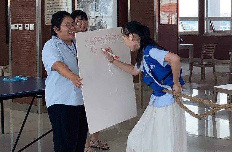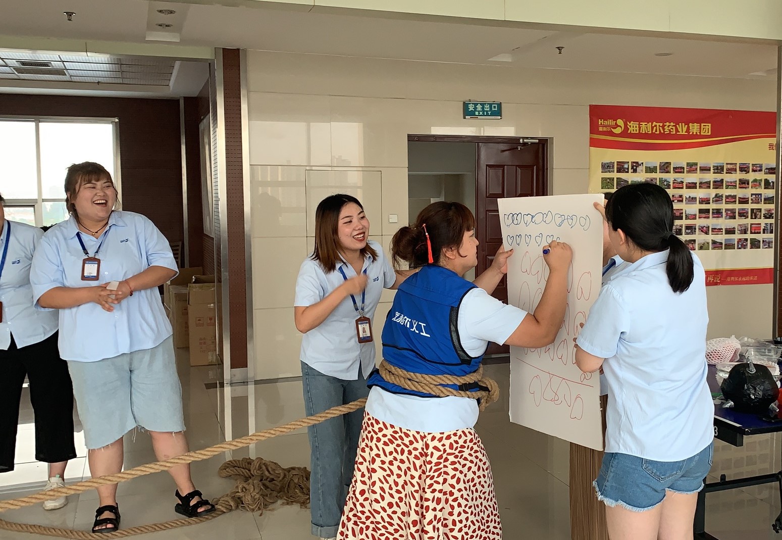當(dāng)天下午,集團(tuán)總部八樓活動(dòng)室內(nèi)熱火朝天,小伙伴們齊聚一堂,沉浸在“穿針引線”“蒙眼避障”“角力繪畫”“智力逃脫”等游戲的歡樂(lè)中。