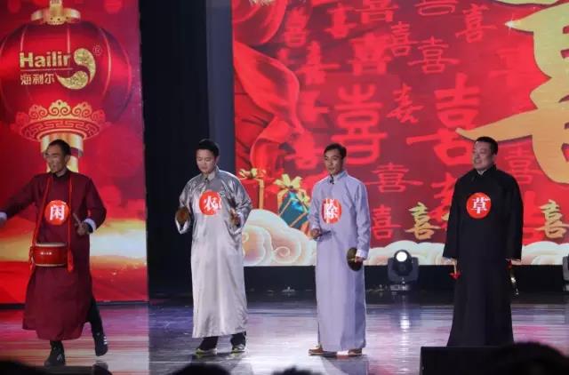 ? ? ? ?迎新春聯(lián)歡會(huì)節(jié)目非常精彩,可謂是花樣百出。優(yōu)雅婉轉(zhuǎn)的舞蹈表演、搞笑連連的小品、精彩不斷的武術(shù)表演等等,贏得了臺下一片掌聲。聯(lián)歡會(huì)在舞蹈《同喜同喜》的熱烈喜慶的氛圍中拉開帷幕,歡慶的音樂,優(yōu)美的舞姿讓人沉醉;緊接著二人轉(zhuǎn)《樂翻天》、三句半《喜事多》搞笑逗趣、調(diào)侃十足,贏得了全場接連不斷的笑聲和不絕于耳的掌聲;歌舞《新春大聯(lián)歡》、《百變輝煌》、《海利爾贊》、《節(jié)節(jié)高》、《鴻雁》、《咱們工人有力量》等唱出了海利爾人的心聲和呼喚,舞出了海利爾的輝煌和未來;小品《聽風(fēng)》、《我的爸爸》幽默之余又充滿感動(dòng)。沙畫《海利爾發(fā)展歷程》,藝術(shù)家用妙手做畫筆,掬一捧細(xì)沙撒下,瞬間將海利爾十七年的風(fēng)雨路惟妙惟肖的呈現(xiàn)出來;相聲表演《酒桌那些事兒》更是搞笑全場,幽默的言語,搞笑的動(dòng)作,夸張的表情,讓人捧腹大笑,掌聲、笑聲不斷綻放。隨后,由銷售經(jīng)理帶來的動(dòng)人合唱《兩億大聯(lián)歡》,更是掀起了整場聯(lián)歡會(huì)的高潮。整場晚會(huì)持續(xù)近三個(gè)小時(shí),全體員工在歡樂中度過,使得聯(lián)歡會(huì)圓滿結(jié)束。