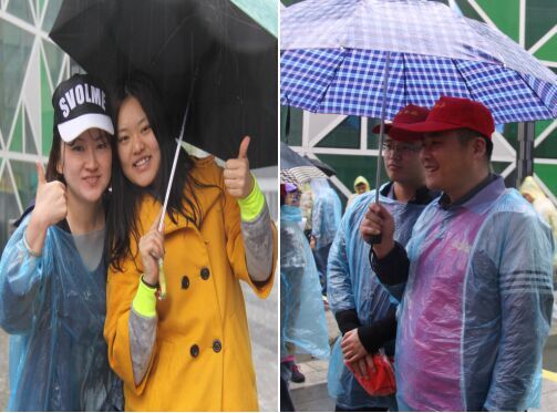 ? ? ? ? 簽完到先在雨中來個(gè)賽前合影吧: