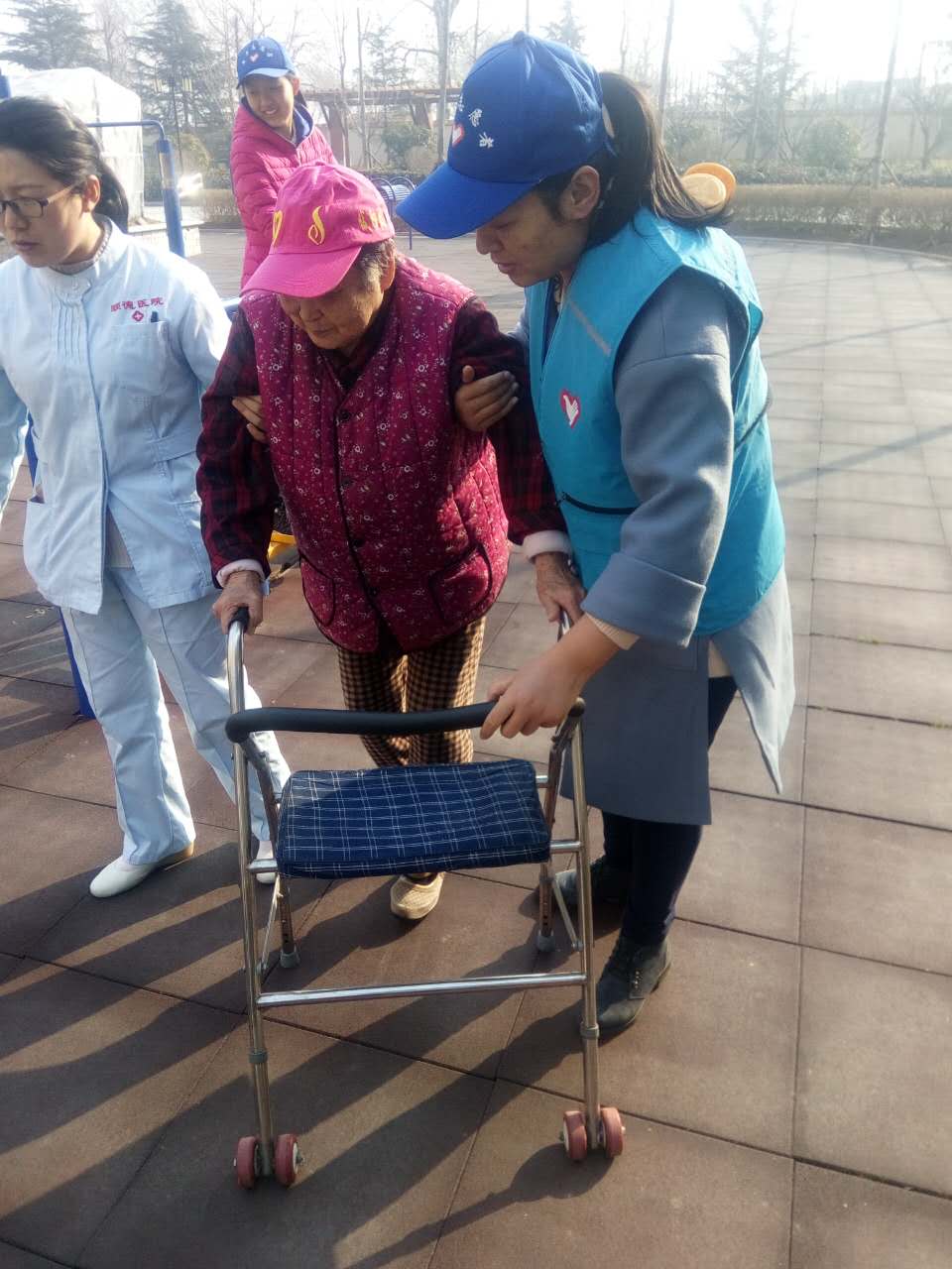 也許你認(rèn)為到戶外運(yùn)動是件在平常不過的事情,但是對于這座樓上的人來說,簡直就是奢侈品,因?yàn)樗麄冃袆硬槐?,加上工作人員有限,所以他們不可能天天到戶外活動。一聽到要出門,老人們都激動的連衣服都顧不上穿,帽子也顧不上帶,興高采烈的往門外走,就像孩子一樣天真。