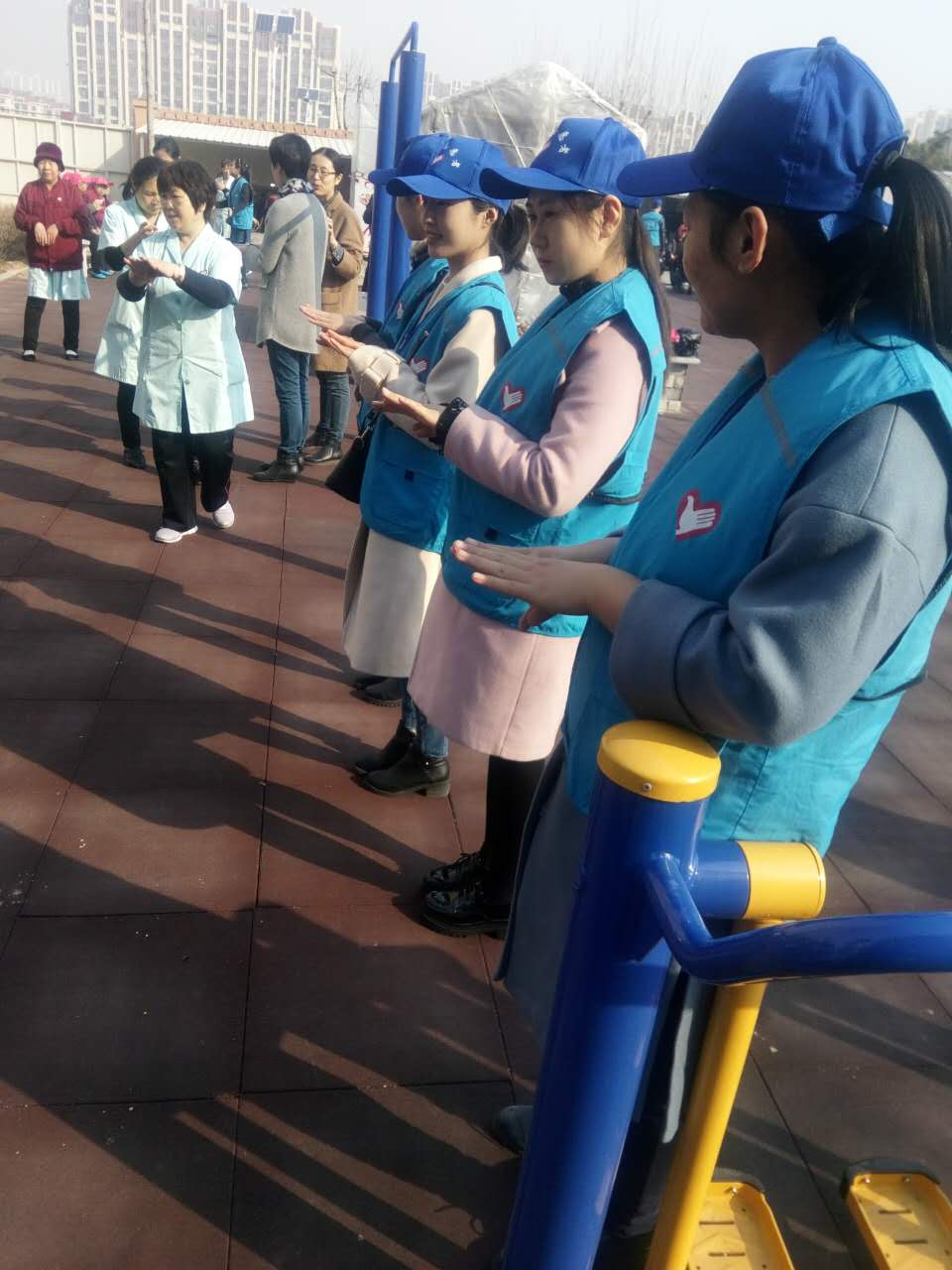 其中有一個老人拉著志愿者的手說:“我是2011年來這里住的,想起來一共到樓下去了一次”,從他的話里你便可以得知他們是多門的期待。志愿者們一人攙扶一位老人慢慢的來到了樓下; 志愿者們主動給手腳不靈便的老人按摩起來; 有的還跟老人們聊天,給老人們表演節(jié)目,為的就是給他們帶去快樂。有個老人看到志愿者們這么熱鬧的場景,反倒流起了眼淚,也許是想家人了,也許勾起了他年輕時候的一些回憶。