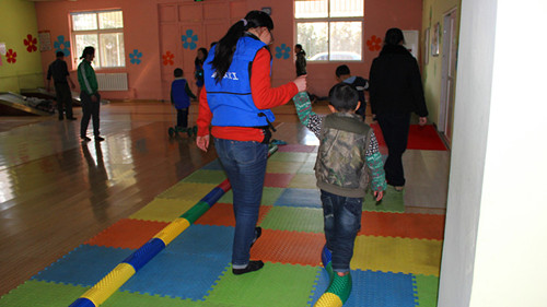 ? ? ? ?從穿上海利爾義工服的那一刻起,我們就覺得自己身上帶著一份很重的責(zé)任,用心與小朋友交流,用關(guān)愛去感化他們。進(jìn)入康復(fù)訓(xùn)練大廳,就能感受到這群孩子的“不一樣”,每個孩子都是個人玩?zhèn)€人的,沒有溝通和交流,也沒有孩子在意我們的到來??吹竭@個場景,我們都感到很心疼。我們漸漸地融入他們,整個下午我們一直在努力與他們玩游戲,幫助他們做康復(fù)訓(xùn)練。我們每個人都很耐心的跟他們玩在一起。他們對我們笑了,我們就很開心,他們跟我們講話了,我們就很滿足。